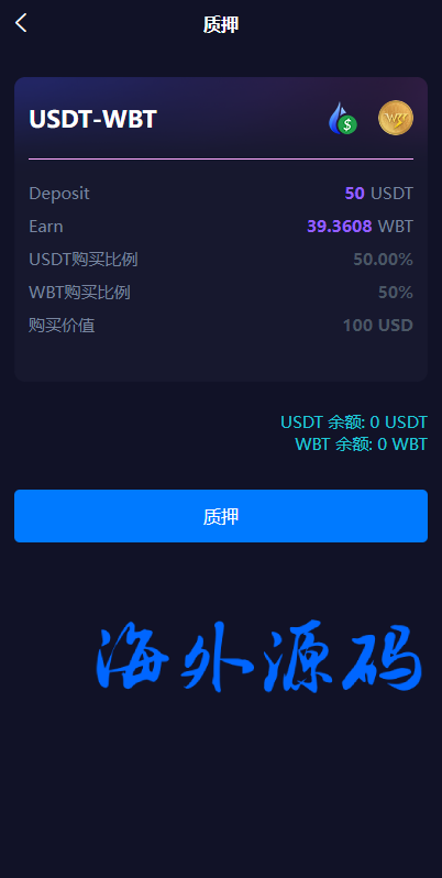 dapp区块链理财系统,支持质押挖矿、支持团队收益 本项目需要在钱包中打开链接,或者浏览器安装钱包拓展插件才可以打开调用
