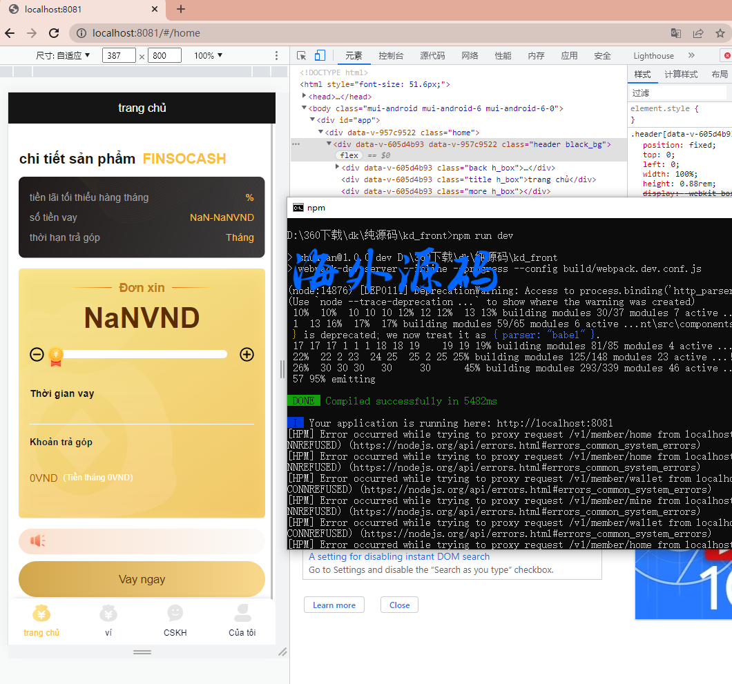 一套比较经典的贷款源码, 后台 代理 前端均为vue源码接口端为node的,前端有中文和越南语